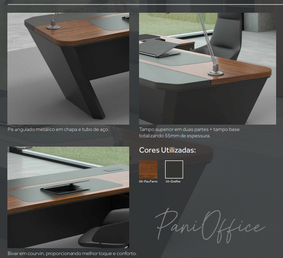 Sempre ousando no design os móveis para Diretoria traz consigo caraterísticas inovadoras desenvolvidas para pessoas de bom gosto que buscam deixar o ambiente de trabalho moderno, requintado e aconchegante.